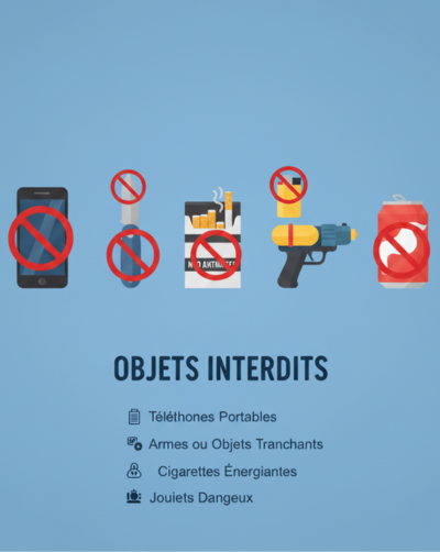 Pour assurer la sécurité et le bon déroulement des activités scolaires, certains objets sont strictement interdits au Groupe Scolaire Saint Nicolas. Leur absence contribue à maintenir un environnement sain, respectueux et propice à l’apprentissage.